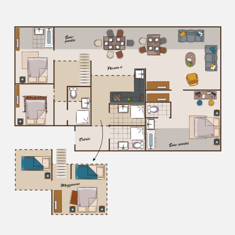 Avec leur décoration soignée et chaleureuse, ces studios et appartements familiaux Vistaero ou Bergerie vous proposent plusieurs prestations confort : machine Nespresso, téléviseur, literie large et double salle de bain privative dans les grands appartements.