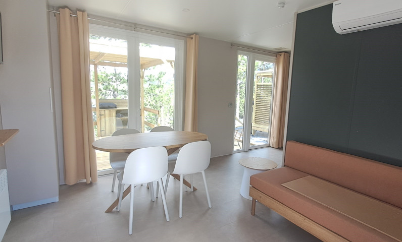 Lits faits à votre arrivée dans l'hébergement, ménage de fin de séjour pris en charge par le camping, linge de maison fourni, location d'équipements...