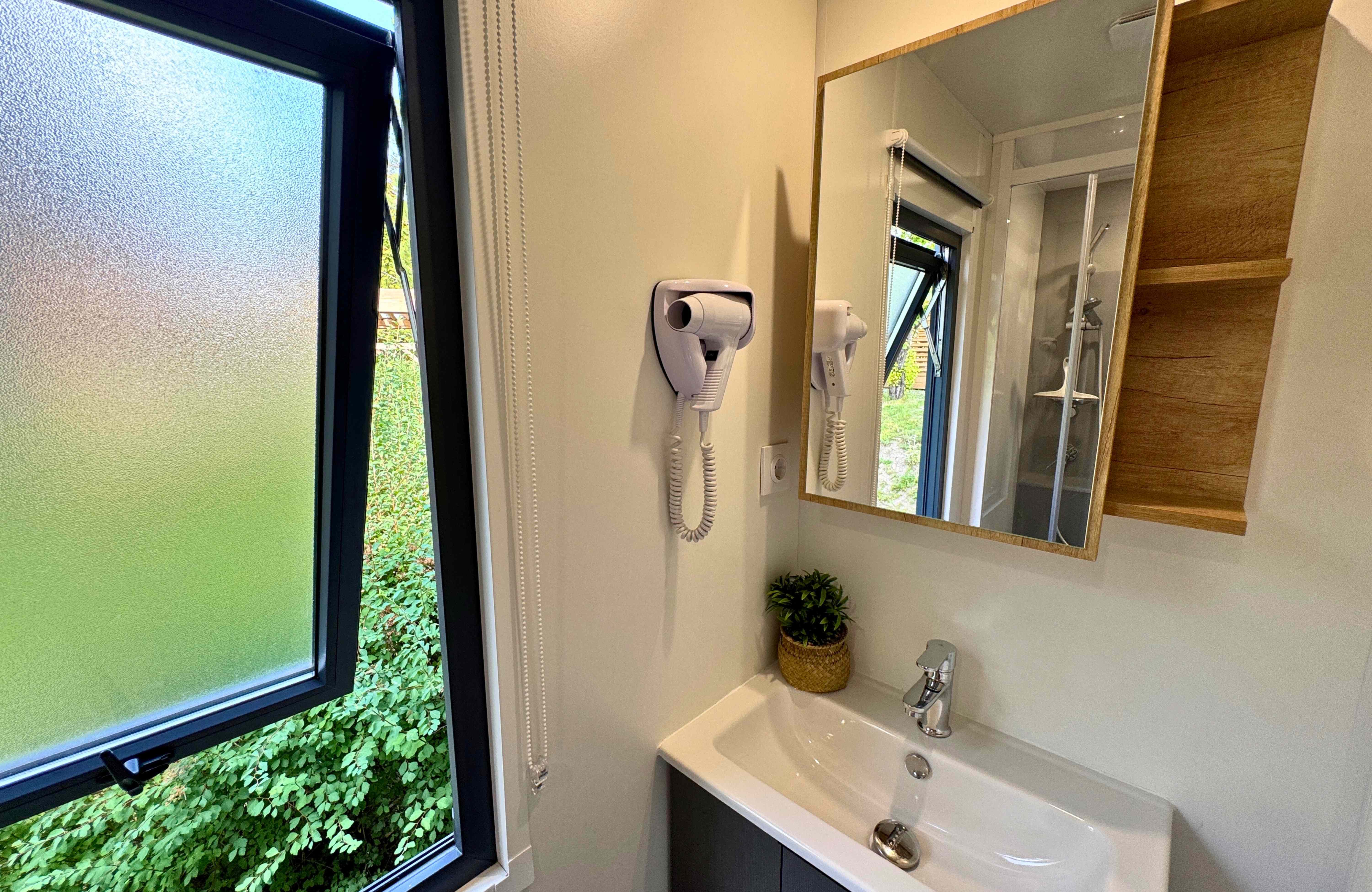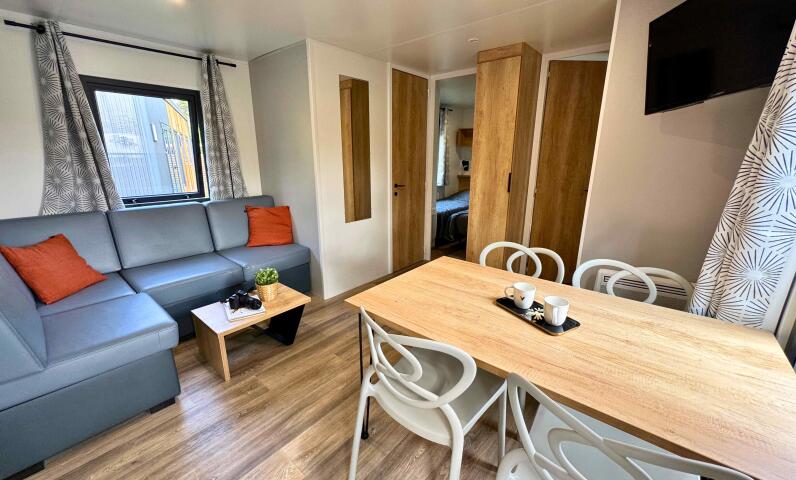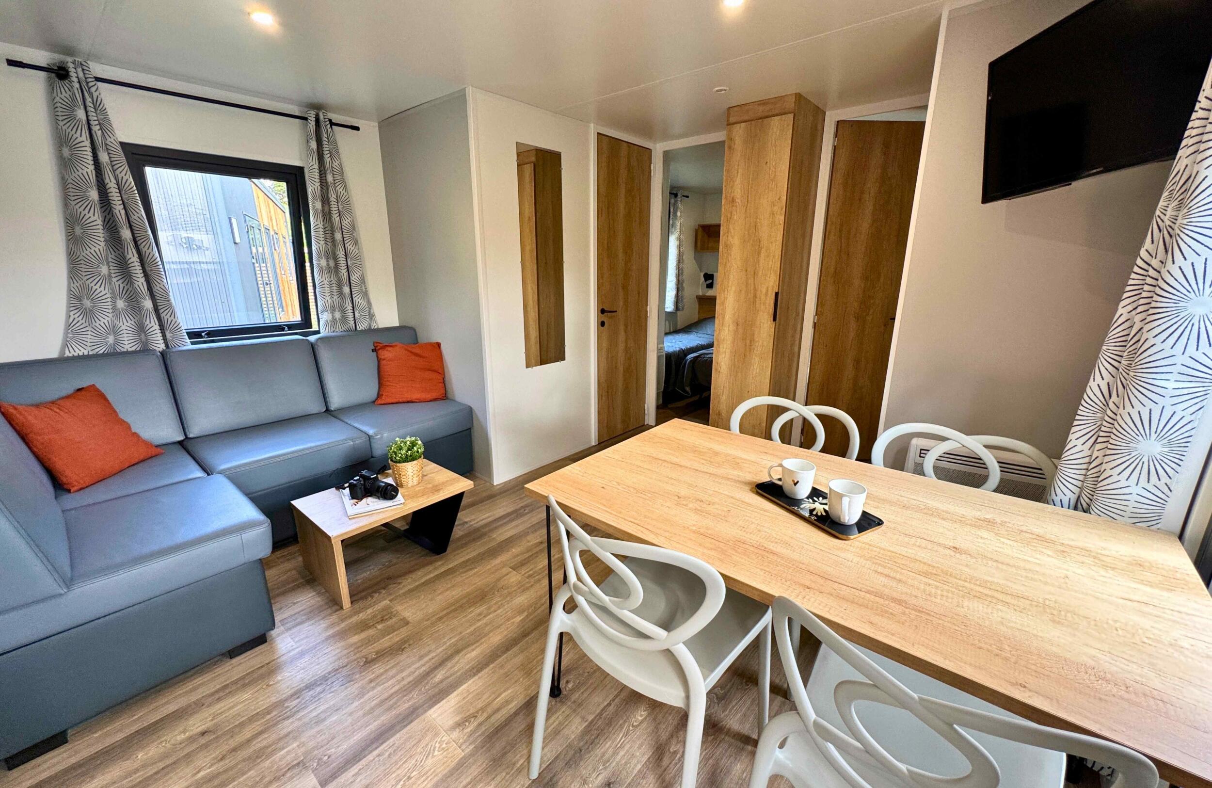 Idéal pour se retrouver en famille ou entre amis en toute convivialité, profitez de cet hébergement équipé et climatisé au coeur du camping.