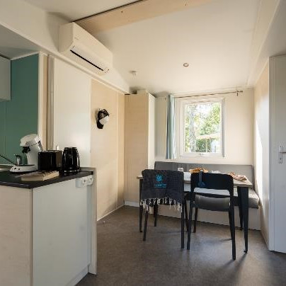 Lits faits à votre arrivée dans l'hébergement, ménage de fin de séjour pris en charge par le camping, linge de maison fourni, location d'équipements...