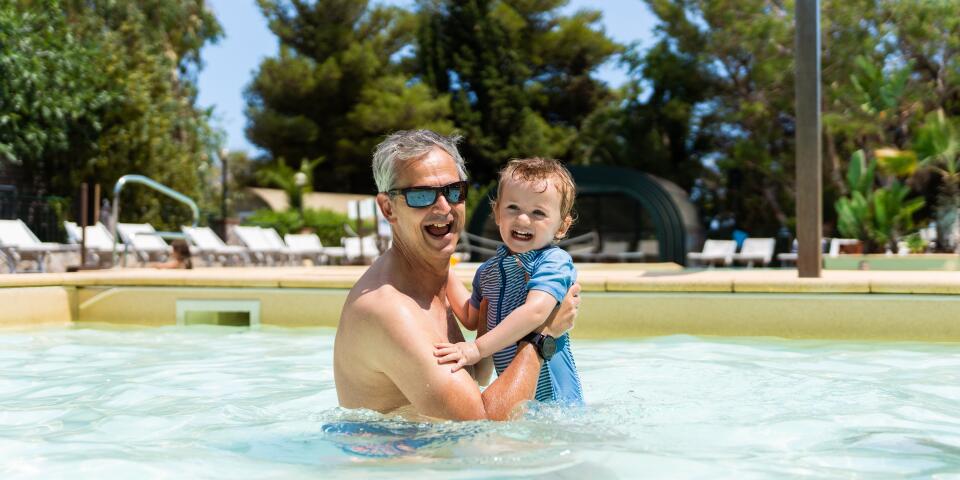 Lieu de vie incontournable dans le camping, plongez dans la vaste piscine extérieure de 264m². Avec vue sur la Méditerranée, prélassez-vous dans ce grand bassin d’eau salée entouré d’une plage idéale pour bronzer.