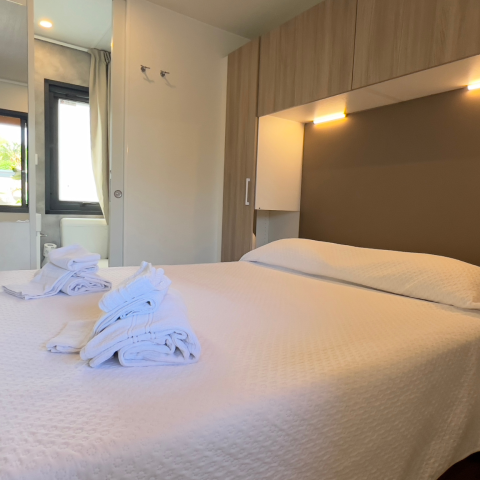 Lits faits à votre arrivée dans l'hébergement, ménage de fin de séjour pris en charge par le camping, linge de maison fourni, location d'équipements...
