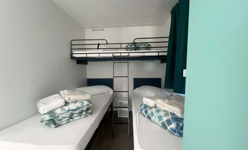 Lits faits à votre arrivée dans l'hébergement, ménage de fin de séjour pris en charge par le camping, linge de maison fourni, location d'équipements...