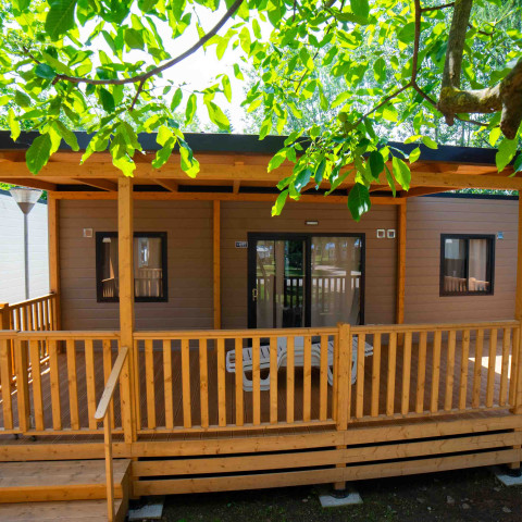 - Espace extérieur pour se prélasser : profitez de la terrasse pour partager des repas conviviaux ou vous détendre au soleil dans les transats. L’ensemble des mobil-homes dispose d’une terrasse couverte.