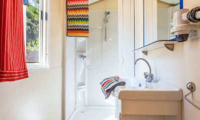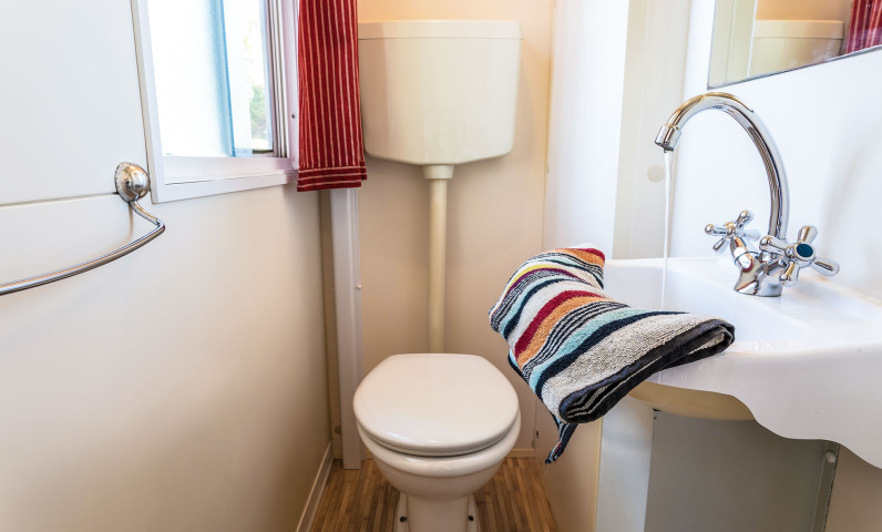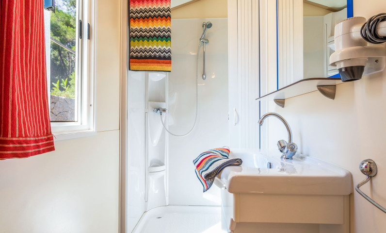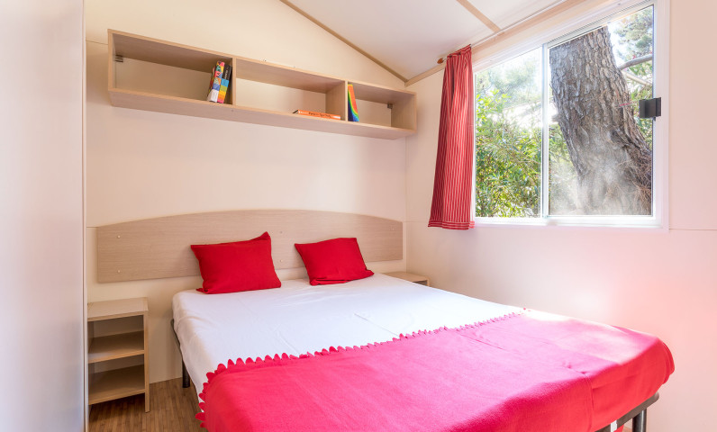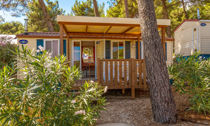 Ha una superficie di circa 24 m² e può contenere al massimo 4 adulti e 2 bambini. È composta da soggiorno con tavolo, sedie, divano letto, angolo cucina attrezzato con frigorifero a colonna completo di freezer oppure frigo con ghiacciaia, piano cottura a 4 fuochi, lavello, pentolame e stoviglie. La zona notte si compone di 2 camere, una con letto matrimoniale e una con 2 letti singoli più un terzo letto rialzato e un divano letto nella zona giorno. L’alloggio è dotato di 1 bagno diviso in 2 locali : 1 doccia e lavabo e 1 wc e lavabo. Un terrazzo in legno coperto o un gazebo bianco attrezzati con tavolo e sedie completano l’alloggio.