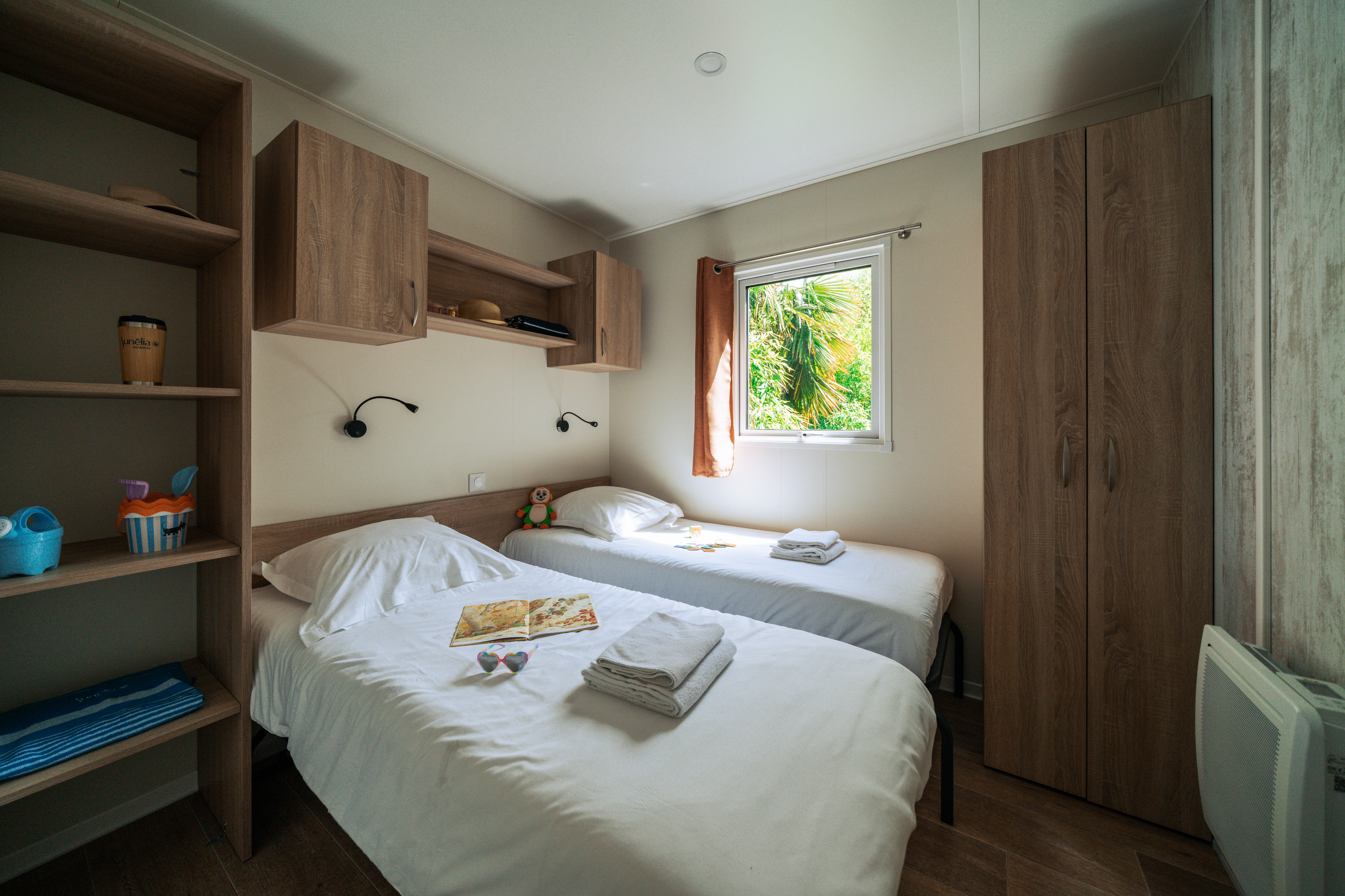 In famiglia o tra amici, trascorri vacanze da sogno nel cuore della Riviera bretone nelle case mobili Luxe TAOS o Lodge Nature Luxe.