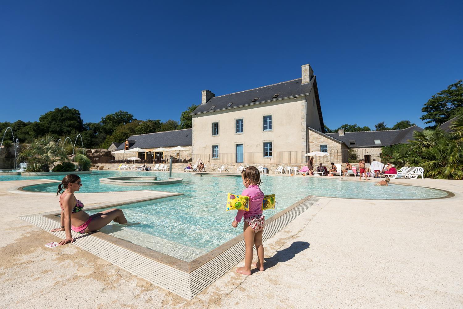 Piazzola spaziosa e erbosa di una superficie superiore a 120 m² , acqua e scarico delle acque chiare in prossimità, attaccamento elettrico di 10 Ampères, delimitato da piccoli cespugli fioriti e da alberi. Il campeggio a quattro stelle é ben riparato , ombreggiato, soleggiato, o metà ombreggiato e soleggiato. Accesso WIFI su tutte le piazzole. Sono inclusi nel prezzo : sanitari confortevoli, doccia calda, accesso alla piscina riscaldata, all'ACQUAPARK de piu' di 600 m² di acqua riscaldata, con balneo, getti d'acqua, fontane toboga nascosti tra le roccie che ricordano i colori delle roccie delle coste bretoni, circondata da una vegetazione esotica, tariffa ridotta per il GOLF a 9 buche dell'Orangerie di Lanniron (sconto del 15%). Animazione per i bambini al Kids Club.
