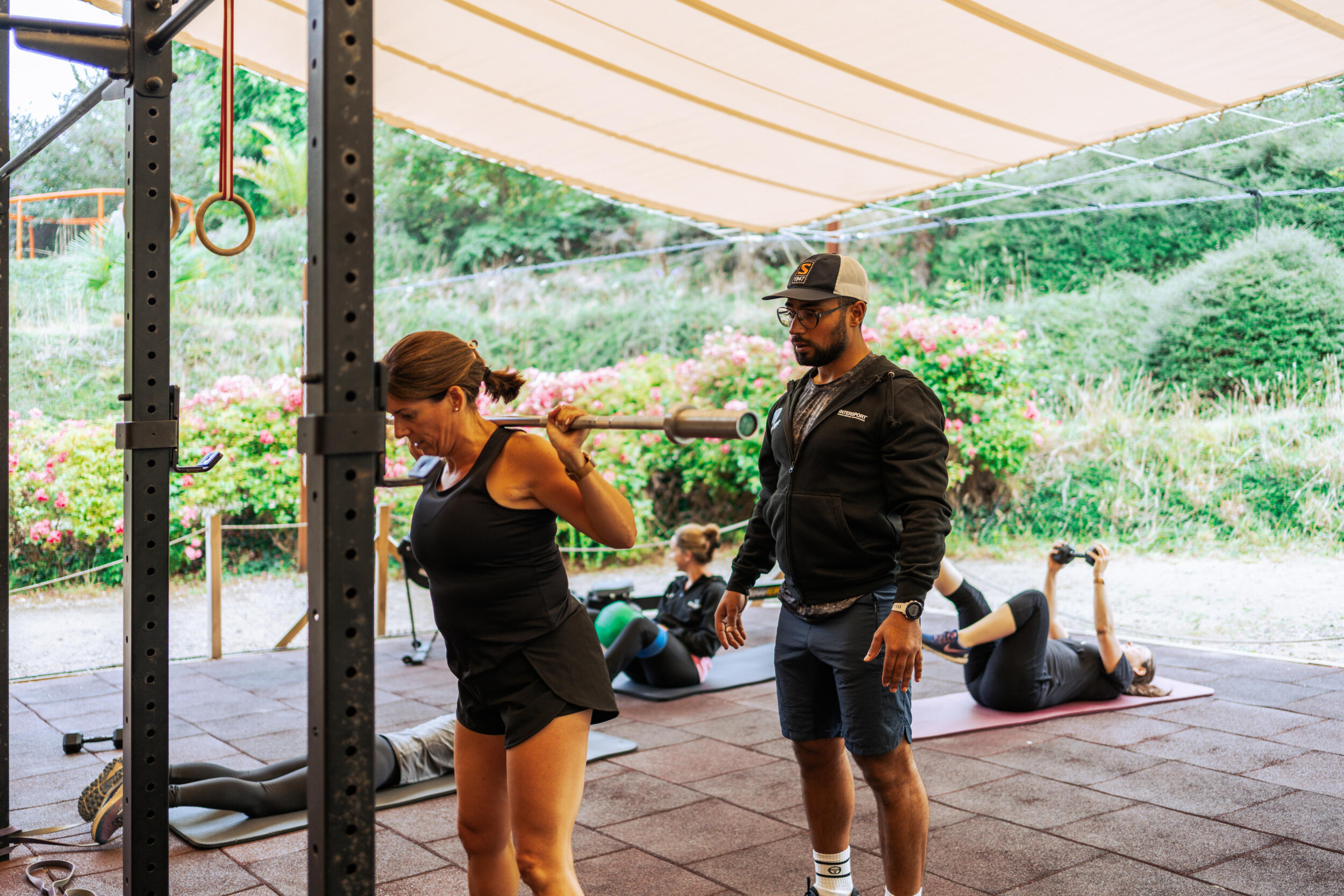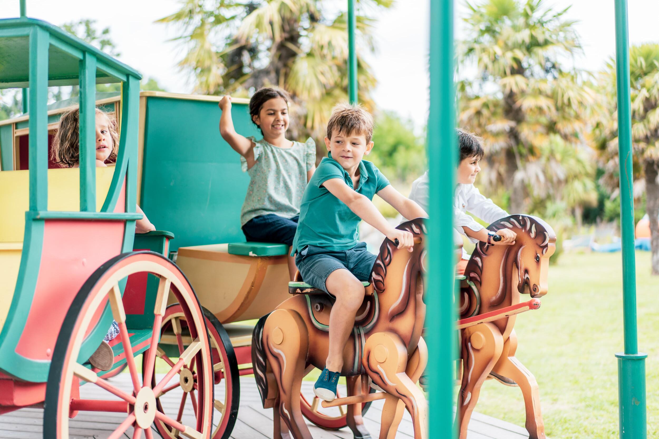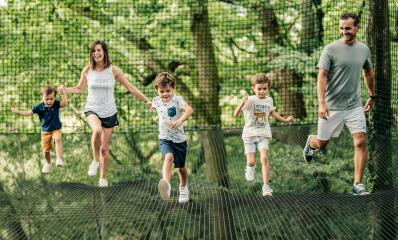 I giochi, adventure parc, il tappeto elastico, i giochi in legno, la buona distanza fra le piazzole, la bellissima passeggiata nel parco