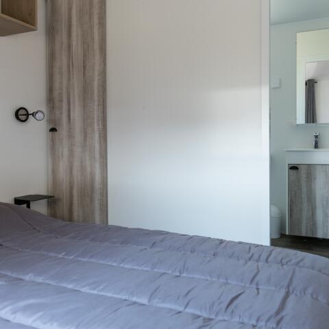 1 bedroom with 1 double bed 160 x 200 cm or 140 x 190 cm. 2 bedrooms with 2 single beds 80 x 190 cm.