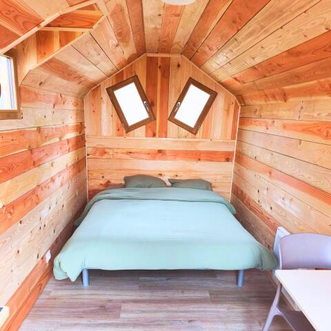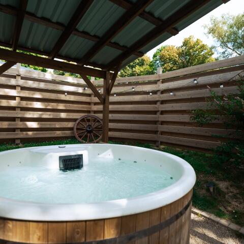 Il tocco in +: immergiti nella natura da una delle 4 case mobili con spa privata. Una volta sistemati in terrazza, fai colazione con tutta la famiglia! Quando cala la notte, potrete anche godervi una cena sotto le stelle o un momento speciale nel vostro bagno di schiuma.