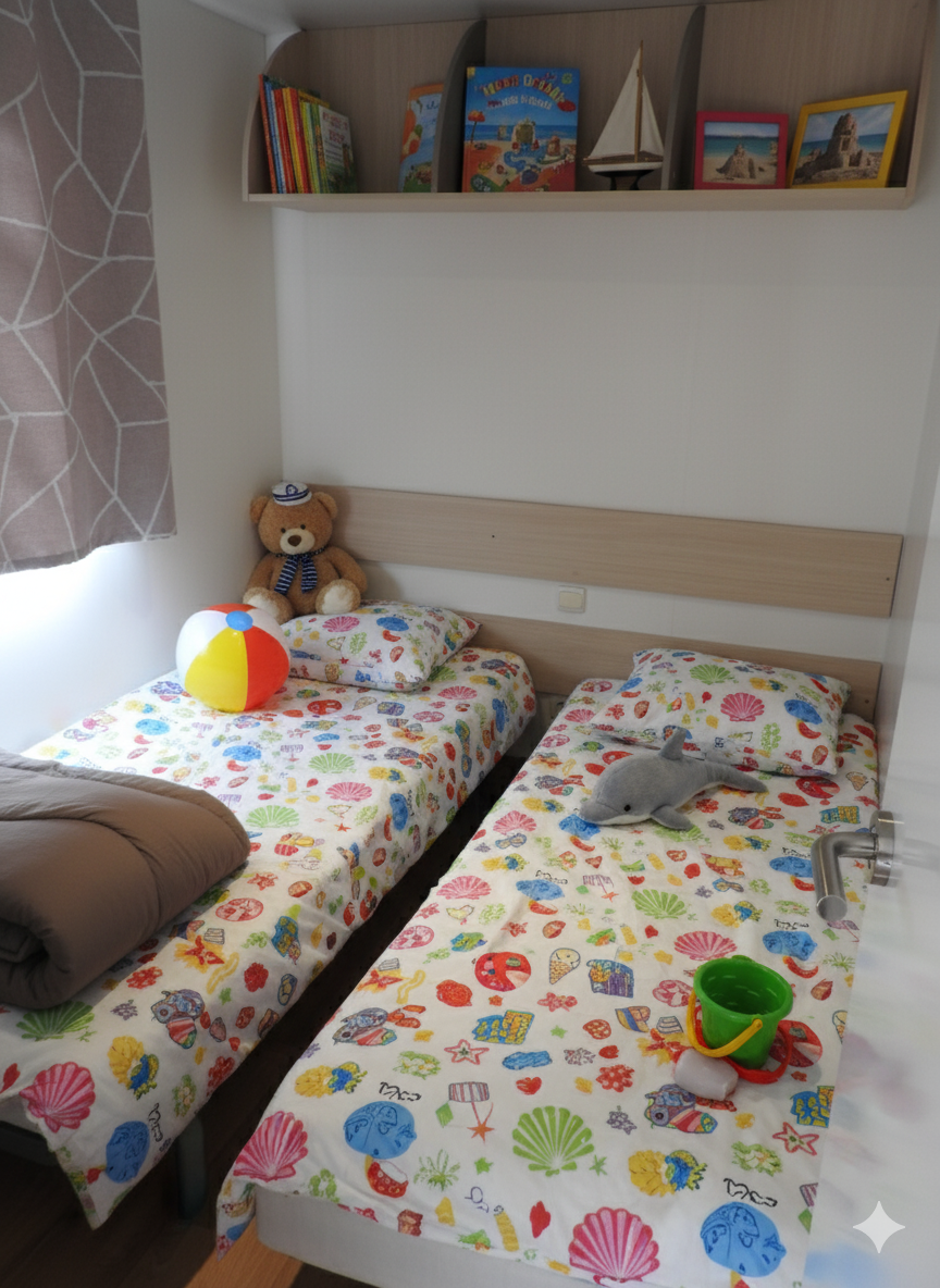 Letti fatti all'arrivo nel vostro alloggio, pulizia di fine soggiorno a cura del campeggio, biancheria per la casa fornita, noleggio di attrezzature...