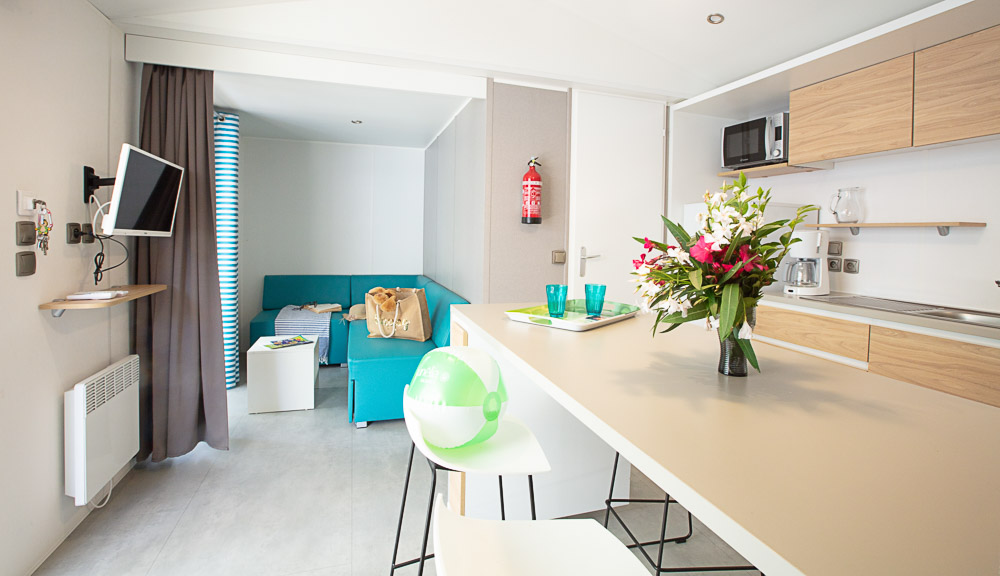 Letti fatti all'arrivo nel vostro alloggio, pulizia di fine soggiorno a cura del campeggio, biancheria per la casa fornita, noleggio di attrezzature...
