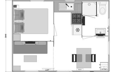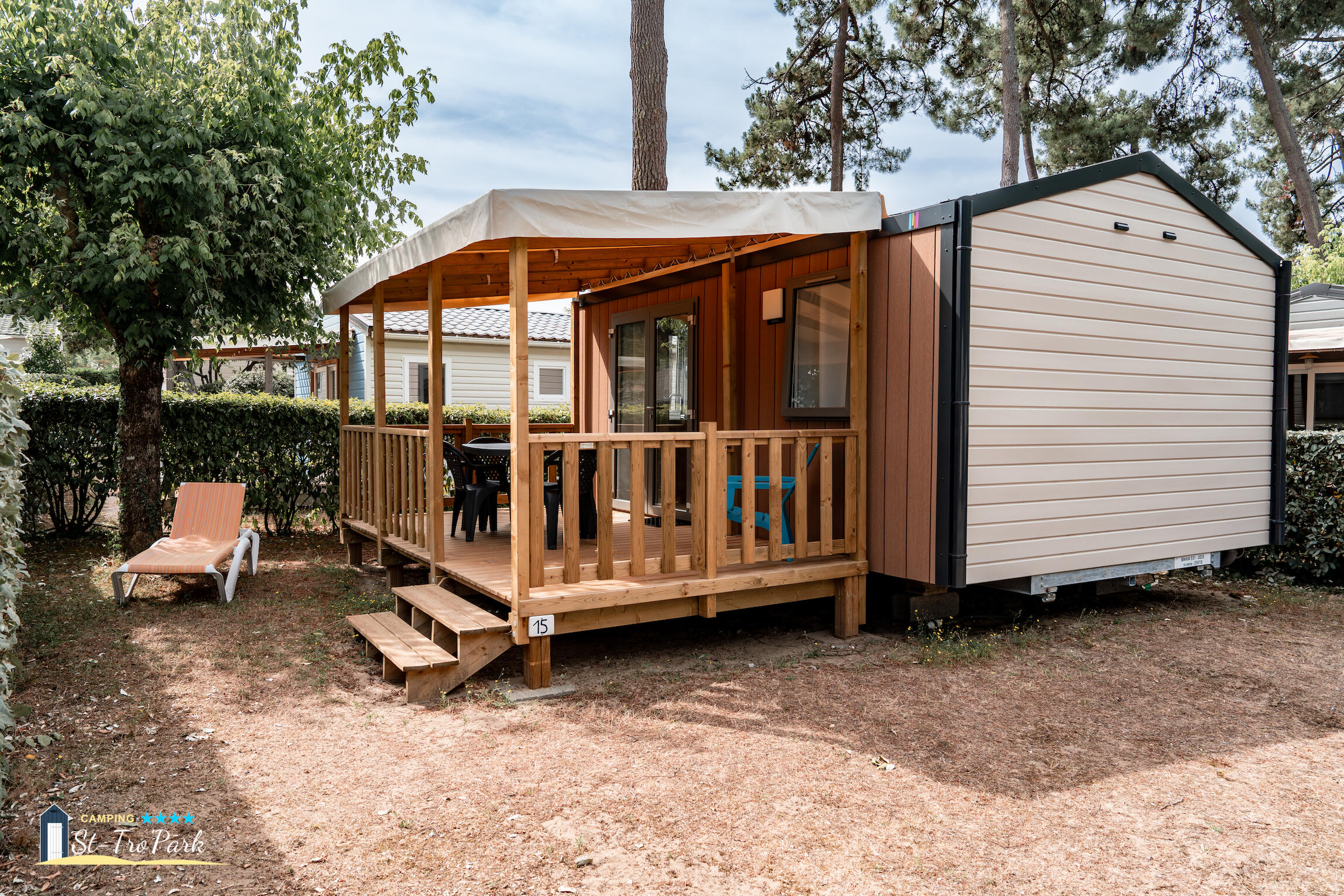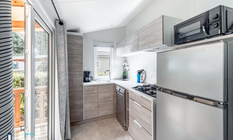 ScoprireMobil-home Premium - 32 m² (2 camere - 2 bagni) + lavastoviglie + terrazza semicoperta di 15 m²