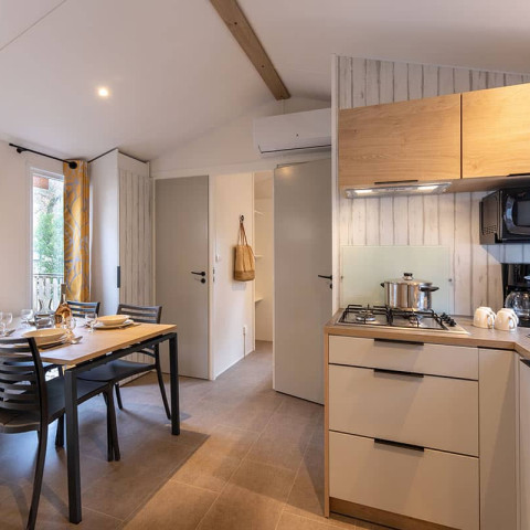 Con le sue case mobili moderne, luminose e full optional, il nostro campeggio a 4 stelle ha tutto il necessario per rendere il tuo soggiorno indimenticabile! Cucina funzionale, letti confortevoli e di qualità con materasso memory foam, aria condizionata, terrazza ombreggiata, barbecue... tutto è pensato per garantire il massimo del comfort. Che tu sia in famiglia, con un gruppo di amici o insieme alla tua dolce metà, le nostre case mobili ti accolgono nei loro spazi abitativi completamente attrezzati, in modo che ognuno possa trovare ciò di cui ha bisogno e godersi un soggiorno nel comfort più assoluto.