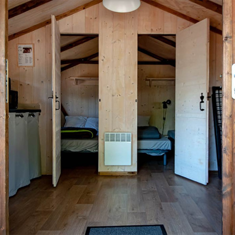 Accoccolate nel cuore di un ambiente incontaminato, questo mix tra tenda e chalet di legno ti regalerà un’immersione totale nel cuore della natura. Tra il canto degli uccellini e il profumo dei pini, vieni a goderti le nostre accoglienti camere da letto, la sala principale con angolo cottura e la terrazza ombreggiata dei nostri alloggi.