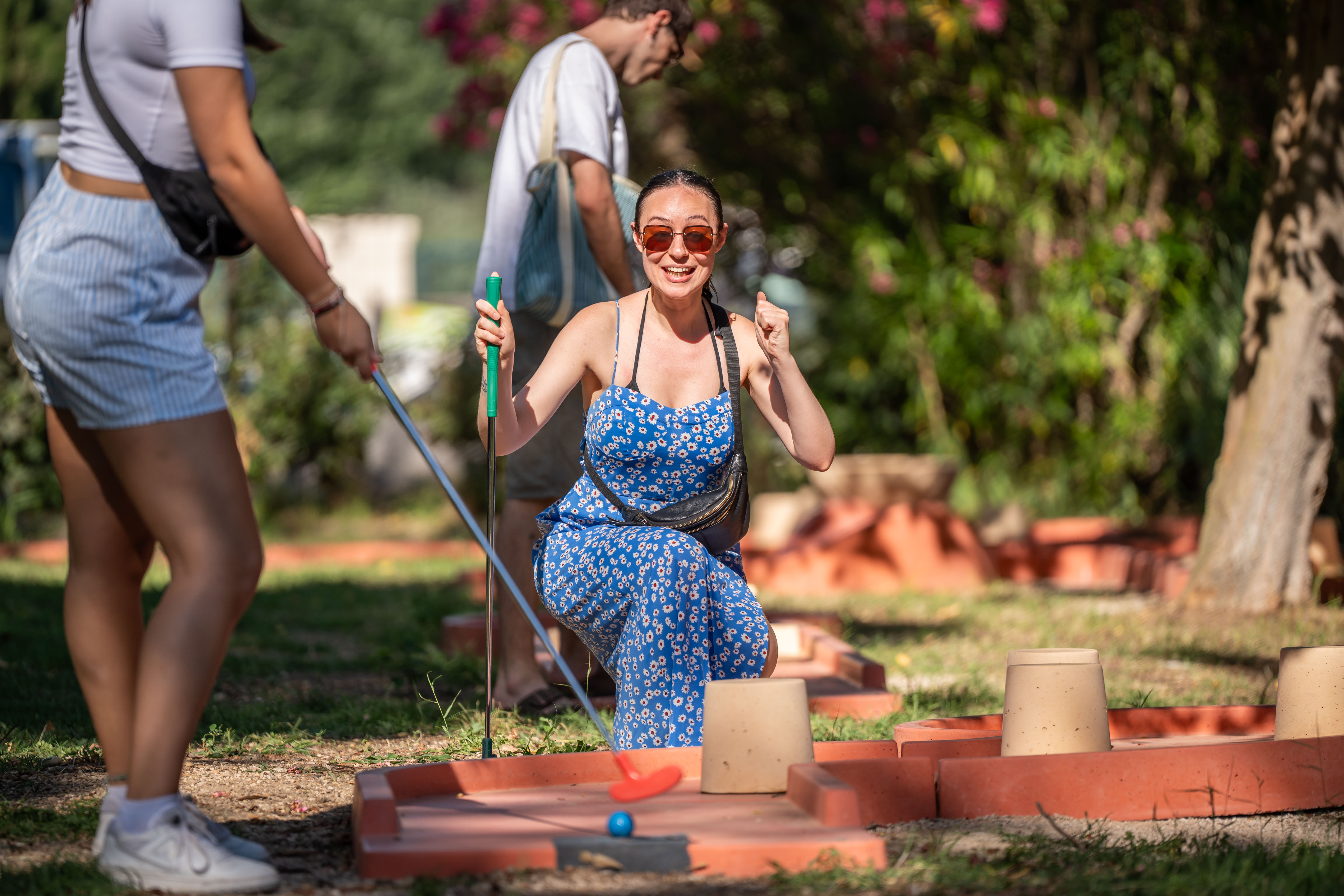 Il programma del campeggio: area fitness, palestra e corsi di acquagym in piscina per riscaldarsi sin dal mattino, tornei di calcio o basket sul campo polisportivo prima di concludere la giornata in famiglia sul campo da minigolf o sui campi da tennis.
