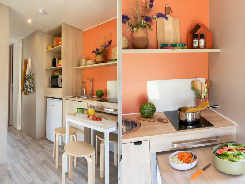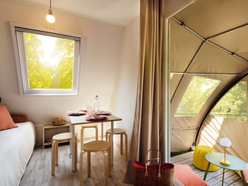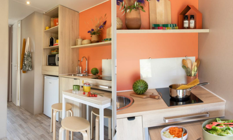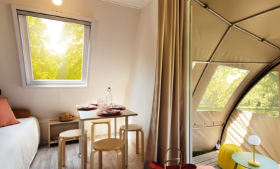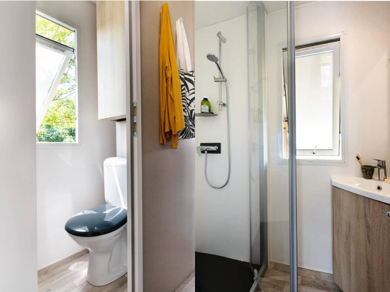 It is the ideal campsite rental for 4 people to spend time on a budget in a Coco Sweet shower room.