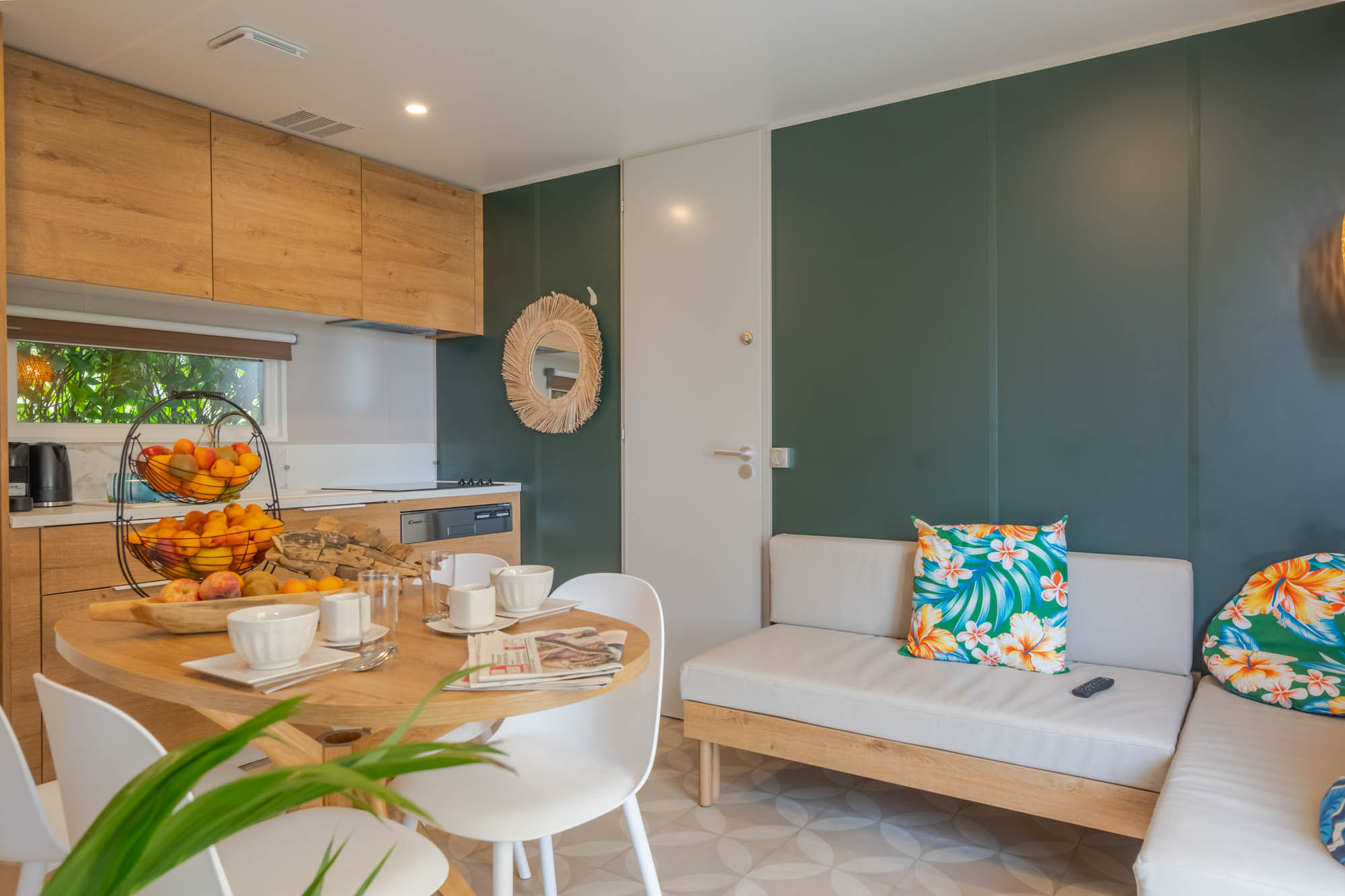 Letti fatti all'arrivo nel vostro alloggio, pulizia di fine soggiorno a cura del campeggio, biancheria per la casa fornita, noleggio di attrezzature...