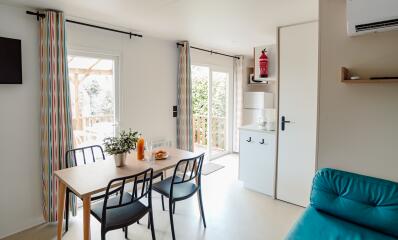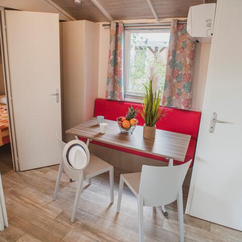Casa mobile con 2 camere da letto (modello Riviera), con cucina separata dal soggiorno e accessibile dalla terrazza.