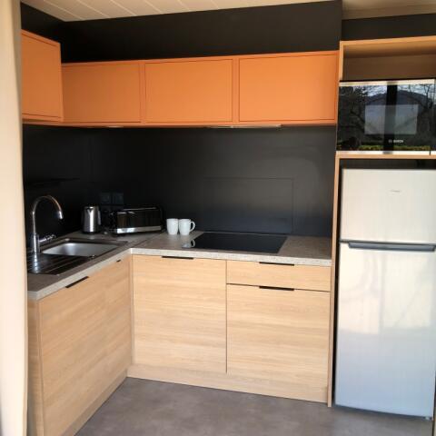 Chalet Sunelia Luxe 2 camere da letto di 35 m², una suite padronale con bagno privato, WC separato, asciugacapelli e letto matrimoniale (160 x 200). Una camera con 3 letti singoli 80 x 190 (1 letto singolo, 1 letto a soppalco e 1 letto a scomparsa) con bagno privato e WC. Soggiorno con divano, TV a schermo piatto e aria condizionata. Angolo cottura attrezzato con frigorifero/congelatore, lavastoviglie, microonde/grill, piano cottura, macchina da caffè Senseo e filtro, bollitore e tostapane. Ampia terrazza coperta in legno con tavolo e sedie, jacuzzi e 2 lettini prendisole. Plancha e servizio alberghiero incluso (letti fatti all'arrivo, asciugamani e pulizia finale inclusi).