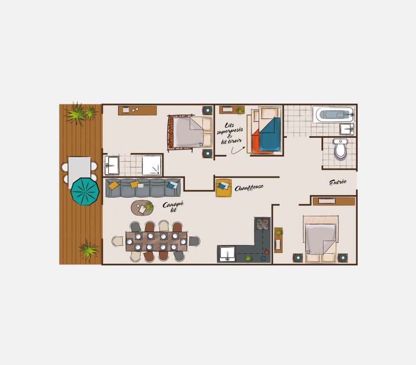 - Letto a castello 2 livelli (80x200) (piumone e cuscini forniti)