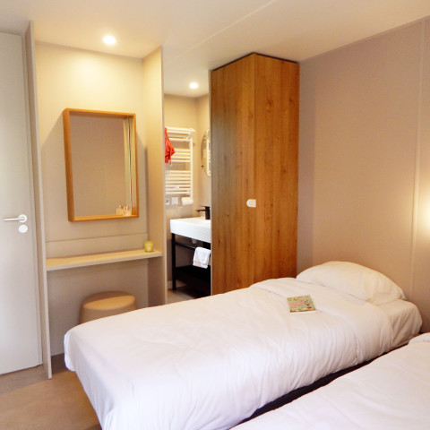 Molto richieste dai vacanzieri, le nostre case mobili moderne e di design soddisfano perfettamente le tue esigenze per le vacanze nel golfo di Saint-Tropez. Disponibile con 3 camere, Sunêlia Luxe Noé è una casa mobile con 2 bagni moderni.