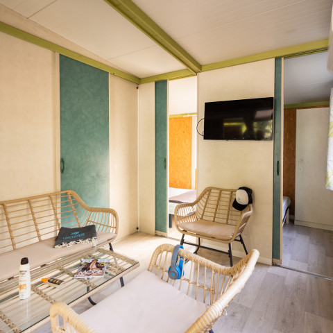 Letti fatti all'arrivo nel vostro alloggio, pulizia di fine soggiorno a cura del campeggio, biancheria per la casa fornita, noleggio di attrezzature...