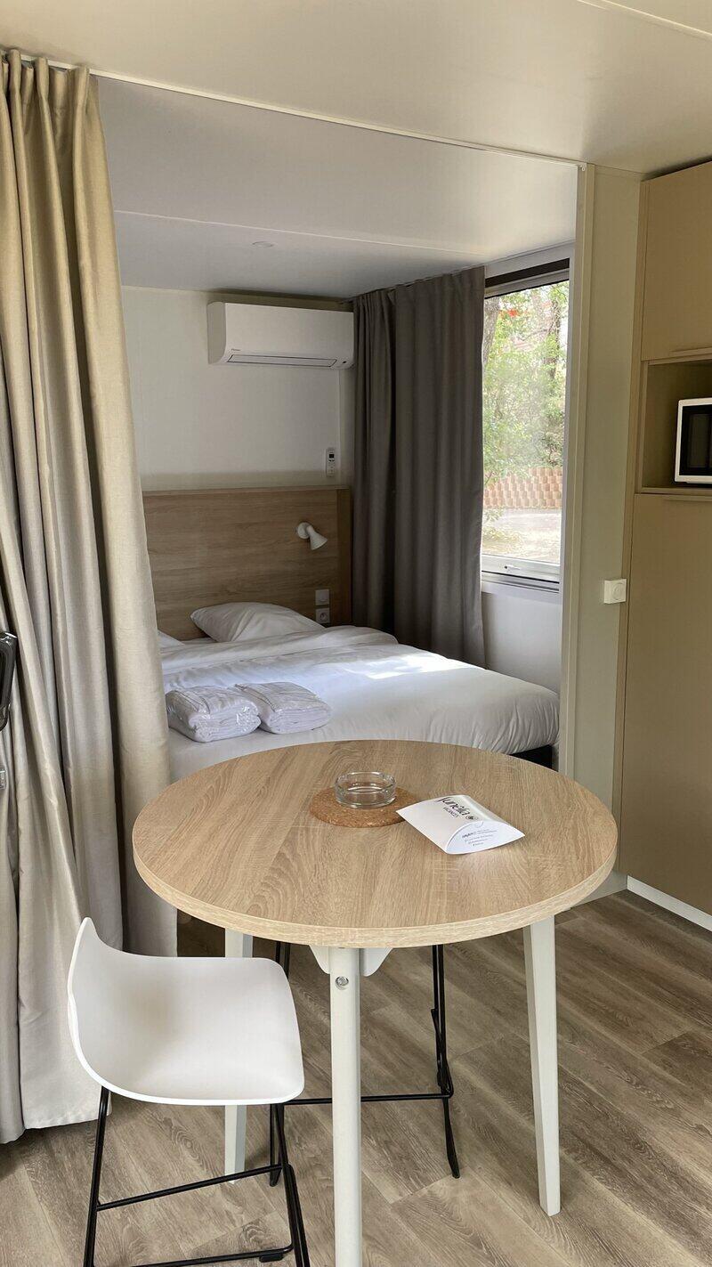 Letti fatti all'arrivo nel vostro alloggio, pulizia di fine soggiorno a cura del campeggio, biancheria per la casa fornita, noleggio di attrezzature...