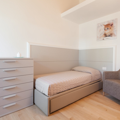 - Ca' della Quercia, un appartamento di 73 m², capace di accogliere da 4 a 6 persone, al 1° piano del residence. Approfitta del suo ampio soggiorno con cucina completamente attrezzata e del balcone con zona pranzo e relax e vista sulla campagna circostante. Per notti di sonno corroboranti, l’appartamento dispone di una camera matrimoniale, una camera con letto singolo a scomparsa e un divano letto nel soggiorno.