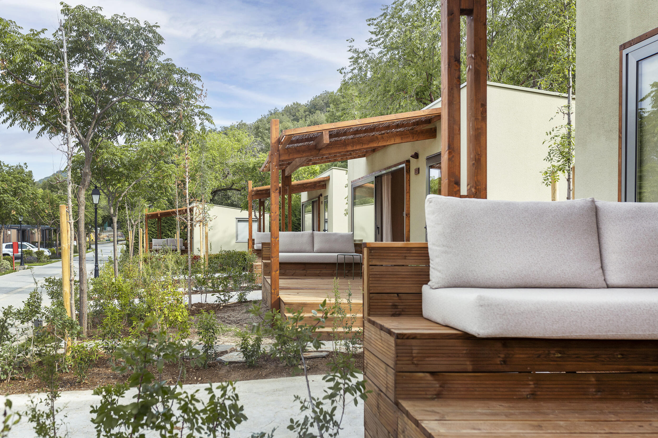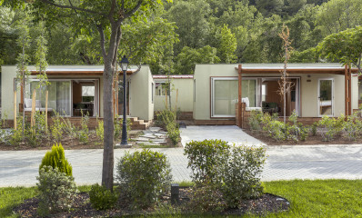 The Mobil Home Family is the perfect choice for your holiday with family or a group of friends, carefully designed by us to accommodate up to 4 people. These modern mobile homes offer a detailed and spacious interior for your comfort. Each mobile home has two well laid out bedrooms: one with a double bed and one with two single beds. In addition, you will enjoy a cosy terrace with a furnished veranda, ideal for relaxing in the shade. The kitchen is fully equipped with ceramic hob, microwave, refrigerator, cooking utensils and cutlery, giving you the flexibility to prepare your own meals. The bathroom includes a shower and toilet for your convenience. Dogs are welcome in this Mobile home.