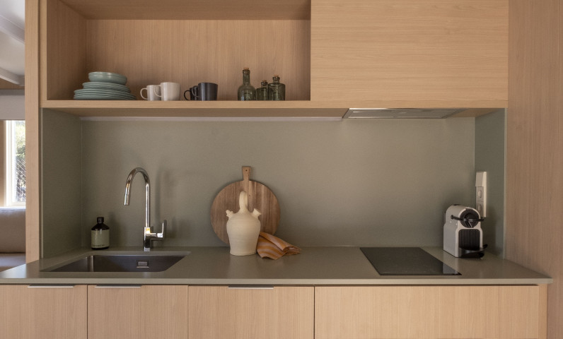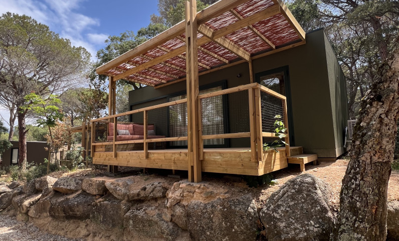 Le Family Mobile Home + sono gli alloggi pensati e progettati da noi per le vostre vacanze in famiglia o con un gruppo di amici fino a 5 persone. Si tratta di una nuova casa mobile con interni dettagliati e spaziosi. È una casa mobile con due camere da letto, una con letto matrimoniale e l'altra con due letti singoli. Dispone inoltre di una terrazza con veranda esterna arredata e ombreggiata. Dotato di cucina con fornelli, microonde, frigorifero, utensili da cucina e posate. Dispongono di un bagno con piccola vasca, doccia e WC.