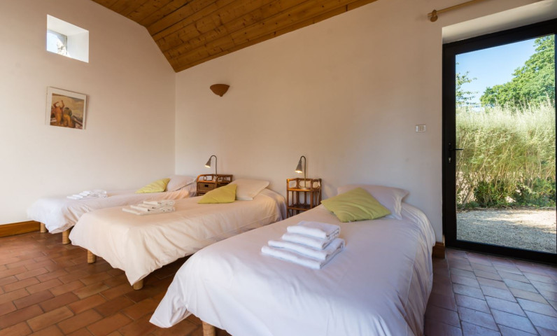Mooi comfortabel huisje van steen met een klein privé-terras aan de zijkant. Het huisje staat tegenover enkele pas gerestaureerde boerderijtjes met in het midden een erf. Het huisje ligt tegenover het zwembad en de wasruimte.