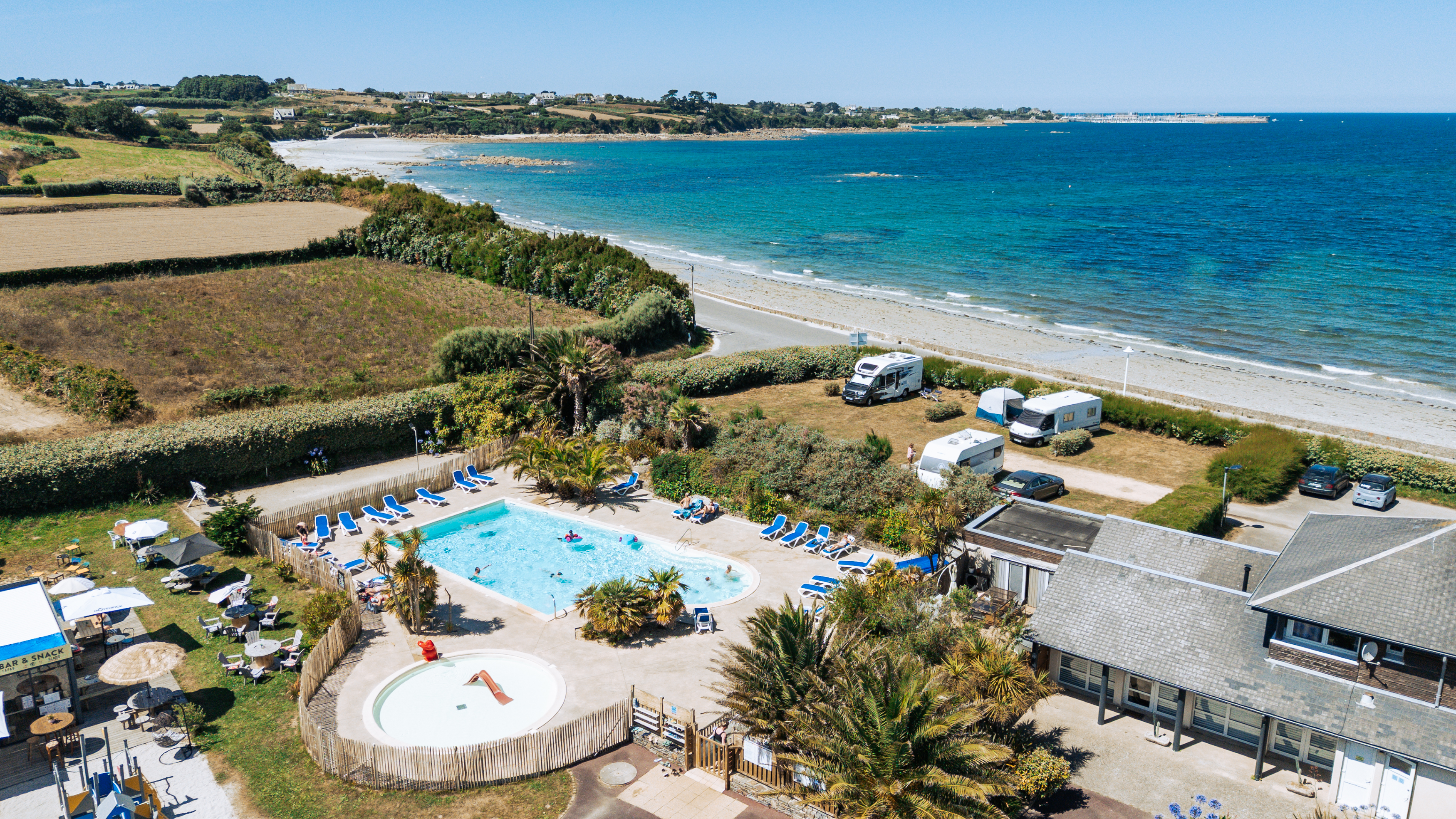 Camping Sunêlia La Baie de Saint Pol, met uitzicht op zee, nodigt je uit voor een verkwikkende vakantie op een terrein van 2,5 hectare. Onze camping is geopend van april tot september en ligt in het hart van de baai van Morlaix waar je kunt profiteren van een onvergetelijke vakantie aan zee.