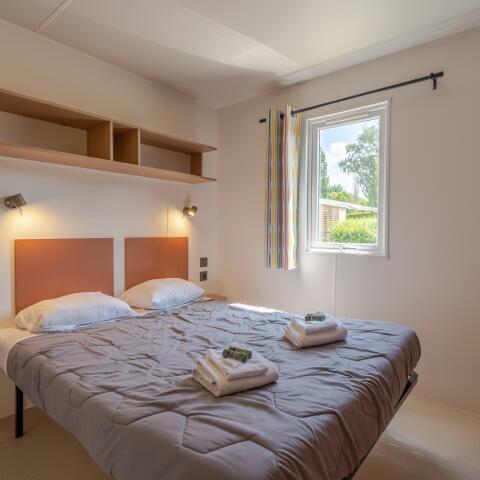 1 grote slaapkamer met 1 tweepersoonsbed van 160 x 200 cm, douche, wastafel, toilet en haardroger.
