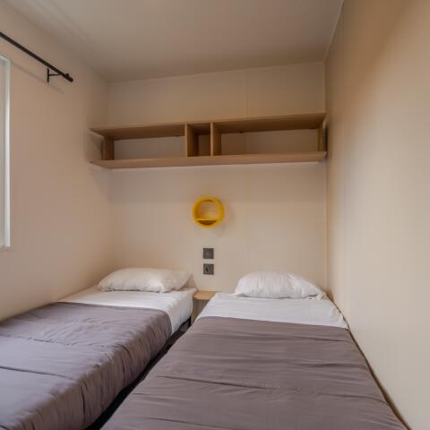 2 slaapkamers met 2 eenpersoonsbedden van 80 x 190 cm.