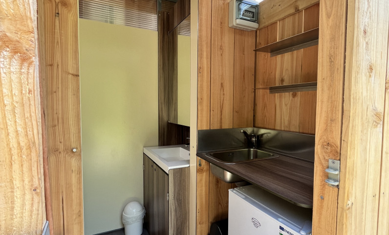 Elke plaats beschikt over een eigen privé sanitair, met een badkamer voorzien van douche, toilet en wastafel, en een kitchenette met spoelbak (let op: de koelkast is niet inbegrepen, maar kan worden gehuurd bij dit type privé sanitair).