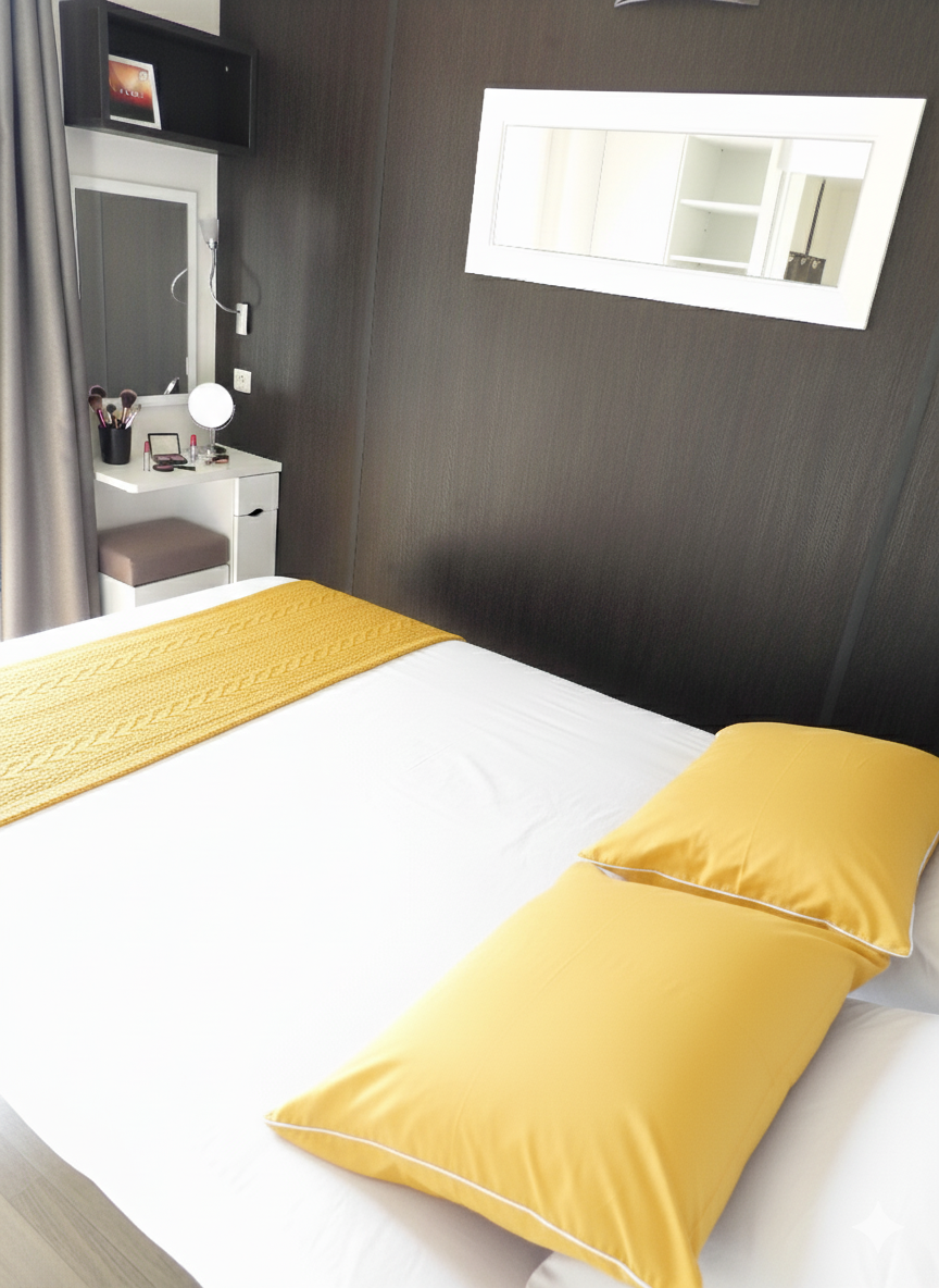 Deze bedden van topklasse, die beschikbaar zijn in alle accommodaties van de Luxury en Prestige series, geven uw verblijf een onvergelijkbaar zacht gevoel. Dankzij het traagschuim met hoge dichtheid kunt u met Sunêlia bedden heerlijk slapen.