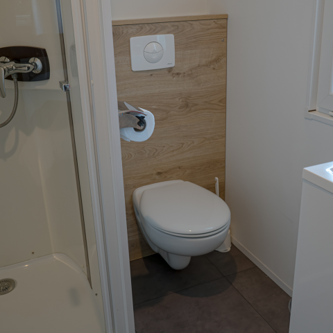 Maak op onze kampeerplaatsen voor tenten, caravans of campers gebruik van optimaal comfort: de sanitair units hebben een douche, wastafel, toilet en een koel-vriescombinatie.