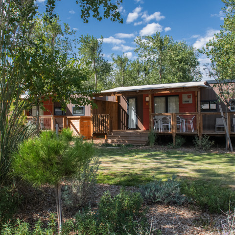 Ontdek onze Premium huisjes: ze staan langs een paadje met wijnstokken. Vanaf het ruime, schaduwrijke terras heb je uitzicht op de schitterende natuuromgeving.