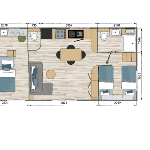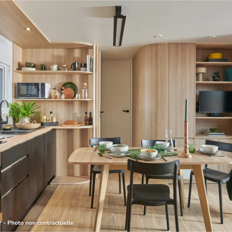 De stacaravans Key West, Taos, Casa of de Cottages VIP en SUP, beschikbaar met 2 of 3 slaapkamers, heten je welkom in een modern en stijlvol interieur.