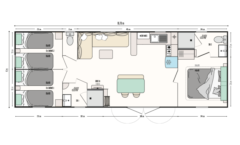 Opgemaakte bedden bij aankomst in uw accommodatie, eindschoonmaak verzorgd door de camping, linnengoed aanwezig, huur van materiaal...