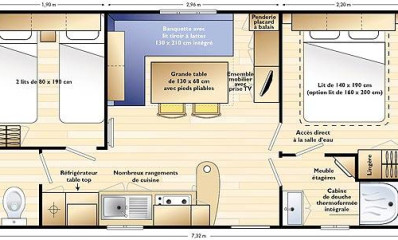 Opgemaakte bedden bij aankomst in uw accommodatie, eindschoonmaak verzorgd door de camping, linnengoed aanwezig, huur van materiaal...