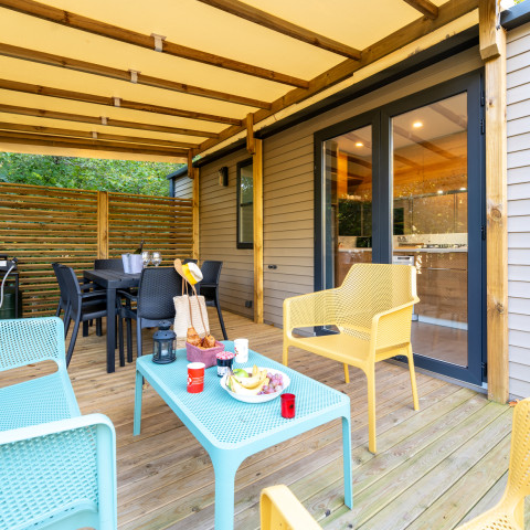 Sunêlia Ibardin, een 4-sterrencamping in Urrugne, heeft een reeks luxe stacaravans te huur in Baskenland, samen met comfortabele chaletjes.