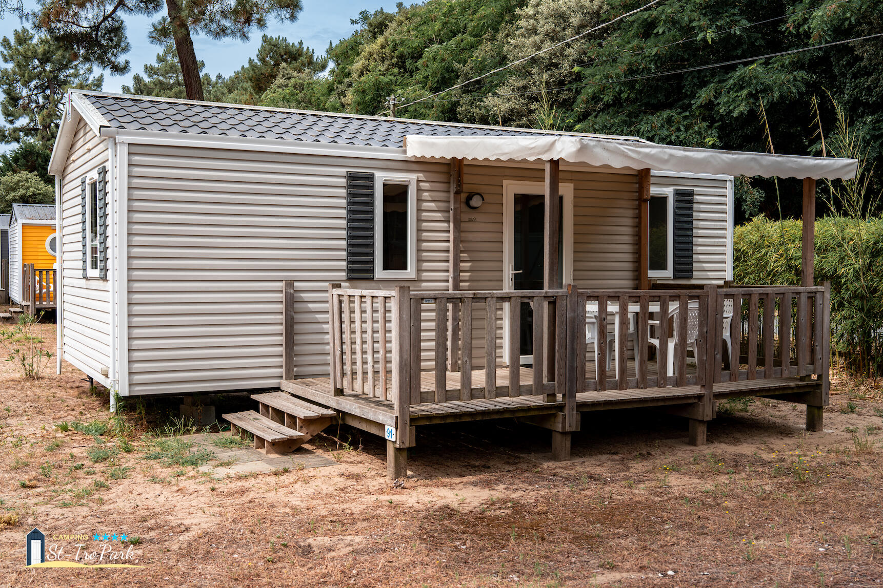 Stacaravan Confort - 27,5 m² (2 slaapkamers) + halfoverdekt houten terras van 11 m²