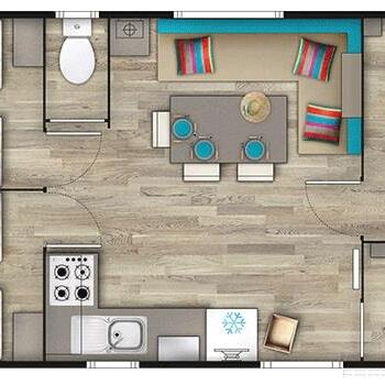 Wilt u de accommodatie ontdekken Chalet Premium 35m² (2 Kamers) + Overdekt terras 12m² +airconditioning ?