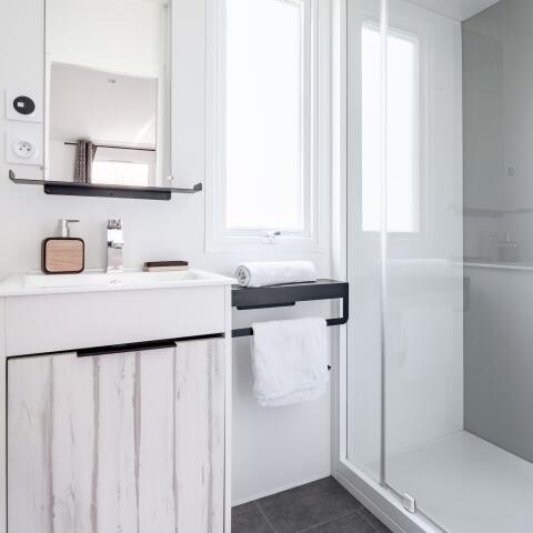 Wilt u de accommodatie ontdekken Stacaravan Premium- 32 m² (2 slaapkamers - 2 badkamers) + vaatwasser + halfoverdekt terras van 15 m² ?