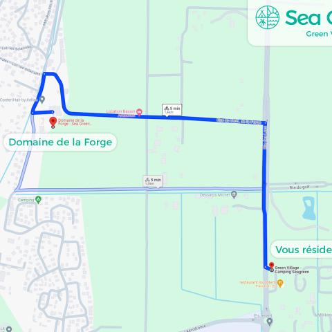 Gelegen op 800 meter van Green Village kan je een duik nemen in het waterpark van 1 150m² van Domaine de la Forge. Hier maak je gebruik van een waar paradijs voor je zintuigen: wissel duizelingwekkende afdalingen op onze glijbanen af met aquagymlessen in het verwarmde zwembad of geniet van een ontspannende pauze in de bubbelbaden.
