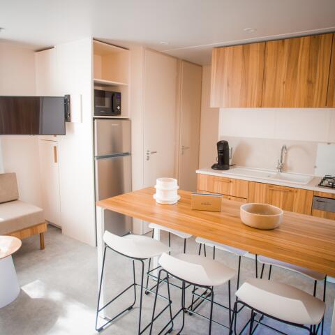 In onze accommodaties, in de beschutting van de maritieme pijnbomen, niet ver van het strand van Casernes, waan je je in een heel andere wereld. Hij gaat volledig op in de natuurlijke omgeving, dus je voelt je of je thuis bent, maar dan op vakantie!