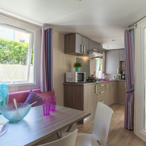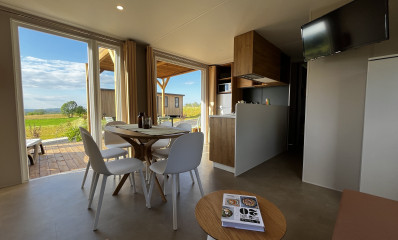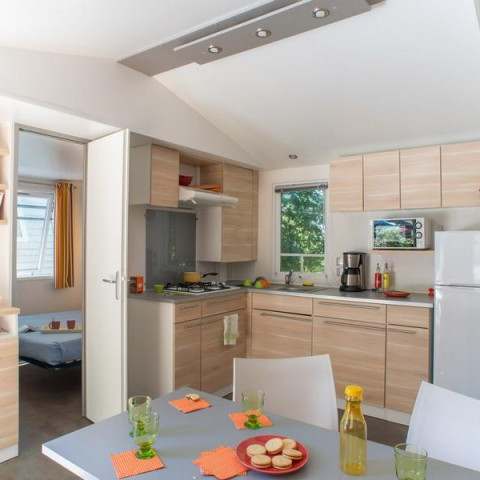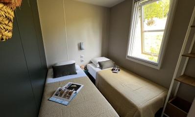 Ontdek onze moderne stacaravan, stijlvol ingericht en gelegen in een rustige, groene omgeving, op slechts een paar stappen van een lagune. Met drie slaapkamers, twee badkamers en alle essentiële services inbegrepen, is het ontworpen voor uw comfort. Ons team staat altijd klaar om uw vragen te beantwoorden. Geniet van een ontspannen en comfortabel verblijf in deze goed uitgeruste ruimte.