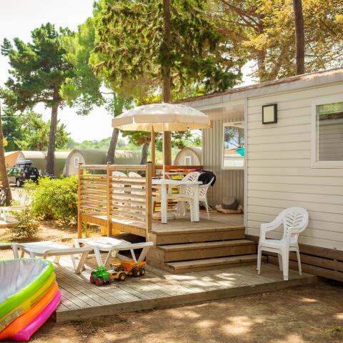 Wat de samenstelling van je clan ook is, wij hebben de accommodatie die bij je past. De stacaravan Sunêlia Prestige Taos bijvoorbeeld, met twee aparte slaapkamers, waarvan een met een master suite. Dankzij de airconditioning, een televisie en een plancha is het zowel binnen als buiten een geweldige plek om te verblijven. Het moderne ontwerp ligt in een rustig, zenachtig gebied en past perfect in de bosrijke omgeving. De accommodatie heeft veel opbergruimte, voor een aangenaam en plezierig verblijf.